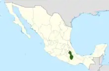 Opuntia huajuapensis is native to parts of Oaxaca, Puebla, and Tlaxcala, Mexico, where the species grows at elevations of 2000 m (6561 feet) to 2700 m (8858 feet). It primarily grows in Pre-cordilleran steppes and Oak-savannah.[2]