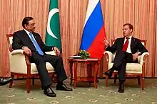Dmitry Medvedev (right) meeting Asif Zardari (left) in 2010.