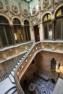 The Palau Baró de Quadras is a small modernista palace located in Barcelona on Avinguda Diagonal, equidistant from La Pedrera and Casa de les Punxes. It was built by the Catalan architect Josep Puig i Cadafalch between 1904 and 1906. In 1976 it was designated as Nacional National Historical Monument of Artistic Interest. Currently houses the main offices of the Institut Ramon Llull.[1]