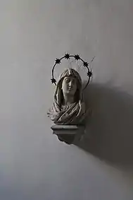 At the center of the main staircase there is the bust of the Virgin Mary attributed to Antonio Bonazza, also from the convent of the Fathers Filippini.