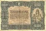 10000 korona | 211 × 144 mm | "PATRONA HUNGARIAE" | |||