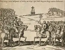 The Parliament of Quillín (Killen) was a diplomatic meeting held in 1641 between various Mapuche groups and Spanish authorities held in the fields of Quillín. With the ensuing treaty the Spanish sought an end to the hostilities of the Arauco War in order to concentrate the empire's resources in fighting the Catalans in Europe. This way the Mapuche obtained a peace treaty and a recognition on behalf of the crown in a case unique for any indigenous group in the Americas.[1] Another contributing factor for parties to wanting to end warfare may have been the 1640 eruption of Llaima volcano in the middle of the conflict zone.[2] Possibly Mapuches interpreted the eruption as a signal sent from the pillanes.[2]