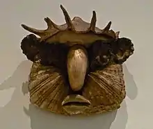As an artist, Maisonneuve bloomed late in life. At the age of 64, he started a series of fifteen portraits which poked fun at or ridiculed politicians and monarchs from various countries. He made their effigies out of tropical seashells, primarily mollusc shells, which were held together with plaster, working without any concern for the end result. He used shells that he already had in his collection, or bought them at jumble sales. He called the series "Les Fourbes de l'Europe" ("Treacherous Rogues of Europe"). The portrait series included masks of Queen Victoria and the emperor William II.[1][2][3] and also of the Chinese, the Teuton (French term of abuse for the Germans) and the Tartar. After a while however, Maisonneuve shifted his attention from parody to the study of the human face and its many expressions.