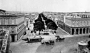 Alameda de Isabel II in Paseo del Prado, Havana, as is depicted in La Ilustración Española y Americana in 1874.[1]