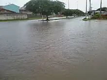 Paulínia's geography is homogeneous. The municipality has a flat relief and Atlantic vegetation. The area of the municipality is 141.72 km², representing 0.0509% of the São Paulo territory, 0.0353% of the area of the Southeast region of Brazil, and 0.0017% of the whole Brazilian territory.[39] It is located in the central-eastern region of the state of São Paulo, between the Atibaia and Jaguari rivers and the Quilombo and Anhumas creeks, 118 kilometers from São Paulo by asphalt road, and 98 kilometers as the crow flies. Located in the Peripheral Paulista Depression, in São Paulo, the city borders Cosmópolis (to the north), Campinas (to the southeast), Sumaré (to the south), Nova Odessa (to the southwest), Jaguariúna (to the east), Holambra (to the northeast) and Americana (to the west). The urban perimeter of Paulínia is 137.61 km²,[40] which is equivalent to 99% of the total area.[35]