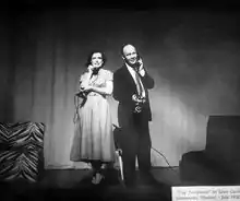 ![]() Paul Hume and Marie Handy performing Gian Carlo Menotti's comic opera The Telephone, or L'Amour à trois at Catholic University, Washington DC, 1952 | |