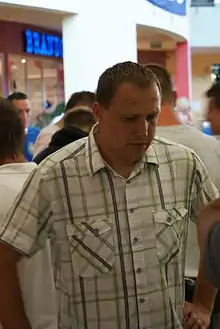 Paweł Kryszałowicz (Polish pronunciation: [ˈpavɛw krɨʂaˈwɔvitʂ]) (born 23 June 1974) is a Polish former professional footballer who played as a striker.[1][2] He represented Poland in 33 matches scoring ten goals.[3] A highlight of his career was the participation and goal scored in the World Cup 2002.