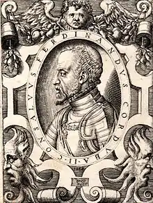 Alfonso Fernández de Córdoba IV (1447–1501), head of the House of Córdoba, was better known as Alonso de Aguilar and was called "El Grande" (the Great).[1] He played a major role in the final stages of the conquest of the Emirate of Granada from the Nasrid dynasty.[2] He was granted the town of Carcabuey and the village of Santa Cruz. Alonso's brother, Gonzalo Fernández de Córdoba, earned the title of Duke of Terranova and the nickname of "Gran Capitán" (Great Captain) for his service in battle, and for his great ability in organizing and modernizing the army of the Catholic Monarchs, Ferdinand of Aragon and Isabella of Castile.[1]