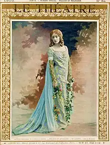 Pelléas et Mélisande received its first performance at the Opéra-Comique in Paris on 30 April 1902 with André Messager conducting. The sets were designed in the Pre-Raphaelite style by Lucien Jusseaume and Eugène Ronsin.[31][32] The premiere received a warmer reception than the dress rehearsal because a group of Debussy aficionados counterbalanced the Opéra-Comique's regular subscribers, who found the work so objectionable. Messager described the reaction: "[It was] certainly not a triumph, but no longer the disaster of two days before...From the second performance onwards, the public remained calm and above all curious to hear this work everyone was talking about...The little group of admirers, Conservatoire pupils and students for the most part, grew day by day..."[33]