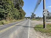 Pennsylvania Route 472 (PA 472) is a northsouth state highway in Chester and Lancaster counties in Pennsylvania. Its southern terminus is at PA 841 in Lewisville 300 yards (270 m) north of the Maryland border. Its northern terminus is at PA 372 in Quarryville. PA 472 is a two-lane undivided road that passes through mostly rural areas along a northwest-southeast alignment. The route passes through the borough of Oxford, where it intersects the southern terminus of PA 10 and has an interchange with U.S. Route 1 (US 1). PA 472 was originally designated in 1928 between US 1/PA 12/PA 42 in Oxford and PA 372 in Quarryville. The route was extended south to Hickory Hill by 1930, at which time the entire length of the route was paved. The southern terminus of PA 472 was extended to PA 841 in Lewisville in 1937.