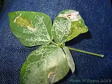 Phodoryctis caerulea mines & larvae on Macroptilium atropurpureum