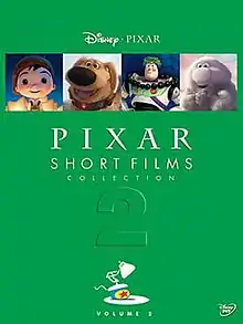Pixar Short Films Collection, Volume 2 is a 2012 DVD and Blu-ray compilation of the Pixar animated short films following the 2007 Pixar Short Films Collection Volume 1 and the 1996 Tiny Toy Stories. It features 12 shorts that were released from 2007 through 2012 and it includes some student films from Pixar's directors as bonus features. Volume 2 was released on November 9, 2012, by Walt Disney Studios Home Entertainment.[2] It is followed by Pixar Short Films Collection, Volume 3, which was released on November 9, 2018.