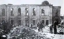 Many places of learning and culture—universities, schools, libraries, museums, theaters and cinemas—were either closed or designated as "Nur für Deutsche" (For Germans Only). Twenty-five museums and a host of other institutions were destroyed during the war.[24] According to one estimate, by war's end 43% of the infrastructure of Poland's educational and research institutions and 14% of its museums had been destroyed.[27] According to another, only 105 of pre-war Poland's 175 museums survived the war, and just 33 of these institutions were able to reopen.[28] Of pre-war Poland's 603 scientific institutions, about half were totally destroyed, and only a few survived the war relatively intact.[29]