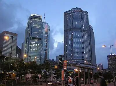 Tower 1 of the International Finance Centre (left) and the Four Season Hotel (right) in Central, Hong Kong.