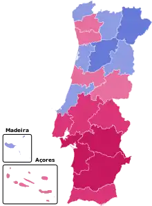 | Viseu | 82,370 | 36.04% | 139,077 | 60.59% | 1,934 | 0.84% | 2,425 | 1.06% | 2,764 | 1.20% | 601 | 0.26% | 79.04% | |