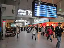 Potsdam Hauptbahnhof is the main station in the German city of Potsdam, capital of the state of Brandenburg. It lies on the Berlin–Magdeburg railway and was founded in 1838. However, it has had this name only since 1999. It was originally called Bahnhof Potsdam (Potsdam station) and it was called Potsdam Stadt (city) station from 1960. The station is the terminus of line S7 of the Berlin S-Bahn, which comes from Ahrensfelde. It is also connected with the central bus station, which is a transfer point between Potsdam and the southwestern region of Berlin, and has a stop on the Potsdam tram network. It is classified by Deutsche Bahn as a category 2 station.[1]