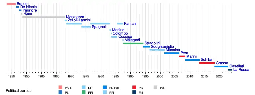 Ignazio La RussaElisabetta CasellatiPietro GrassoRenato SchifaniFranco MariniMarcello PeraNicola MancinoCarlo ScognamiglioGiovanni SpadoliniGiovanni MalagodiFrancesco CossigaVittorino ColomboTommaso MorlinoGiovanni SpagnolliAmintore FanfaniEnnio Zelioli-LanziniCesare MerzagoraMeuccio RuiniGiuseppe ParatoreEnrico De NicolaIvanoe Bonomi