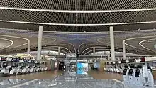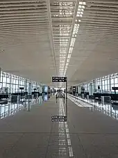 Qingdao Jiaodong International Airport (IATA: TAO, ICAO: ZSQD) is an international airport serving the city of Qingdao in East China’s Shandong province. It received approval in December 2013, and replaced Qingdao Liuting International Airport as the city's main airport.[3] It is located in Jiaodong, Jiaozhou, 39 kilometres (24 mi) from the center of Qingdao.[2] The airport opened on 12 August 2021[1] and is currently the largest airport in Shandong, capable of handling 35 million passengers annually.[4]
