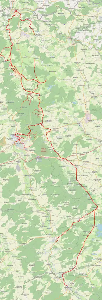 - ↑ Approximate route Vaux-devant-Damloup – Commercy on Google Maps.