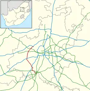 The R28 is a provincial route in Gauteng, South Africa that connects Krugersdorp with Vereeniging via Randfontein. The R28 used to connect with Pretoria, but that section of the road is now part of the N14.[1]
