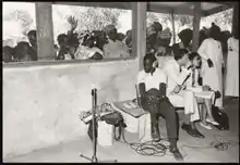 On 4 October 1973, ORTS which had been in talks with Radio Gambia about producing a joint radio programme based on Senegambian history and broadcast in the local languages came to an agreement, and the first ever recording of the programme Chossani Senegambia (the history of Senegambia) was made.[3] The Gambian team consisted of veteran broadcasters like Alhaji Alieu Ebrima Cham Joof (historian, former Director of Programmes and Head of Local Languages at Radio Gambia), Alhaji Assan Njie (Presenter of Radio Gambia), Alhaji Mansour Njie (historian and Presenter of Radio Gambia, later Presenter of Gambia Radio & Television Service (GRTS) and Alhaji Ousman Secka.[4][5] Alhaji Alieu Ebrima Cham Joof (Coordinator of the program for Radio Gambia) travelled to various parts of Senegal and the Gambia accompanied by his team of journalists including Cheickh Jallow, to interview the elders knowledgeable in Senegambian history.[6][7] The Senegalese team also went to the Gambia to gather materials. Their team included: Ebrima Mbenga (Coordinator of the program for ORTS), Dodou Diego Diop and Alioune Cissé. The programme was pre-recorded and it was scheduled by both Radio Stations to go live at the same time and date (Tuesdays), so that both Gambian and Senegalese listeners can listen to it at the same time.[8][9][10] On many occasions, prominent Senegalese historians made live appearances at Radio Gambia studios and vice versa.[11][12] The programme was generally accompanied by live music from prominent griots like Jali Nyama Suso, Alhaji Bai Konte (on Kora also griot), Alhaji Abdoulaye Samba (or Abdulai Samba, on Xalam also griot) and backing singers. Some of the prominent historians from Senegal that appeared on the programme included: El Hadji Demba Lamin Diouf, Modou Diouf (also known as Captain Modou Diouf - special appearance at Radio Gambia, 1979), El Hadji Mansour Gueye and Gorgi Makura Mboob. From the Gambia they included: Dodou Nying Koliyandeh, Jabell Samba, Alhaji Babou Samba, Alhaji Bamba Suso, Doctor Lamin Mbaye, Alhaji Momodou Lamin Bah and Alhaji Sait Camara.[13][14][15] The programme was a success in both Senegal and the Gambia, because no programme like that existed before in neither country.[16]