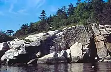 Ragged Island provides habitat for a large and diverse population of nesting seabirds, including the eider duck, black guillemot, greater black-backed gull, herring gull and osprey. Maine Coast Heritage Trust led an effort to protect the island, and in 2008 the U.S. Fish and Wildlife Service’s National Coastal Wetlands Conservation Grant program awarded a $323,000 Coastal Wetland grant to purchase a conservation easement on the property. The easement, held by Maine Coast Heritage Trust, permanently protects the 76.6-acre (310,000 m2) natural area used by seabirds for nesting on Ragged Island.[3]