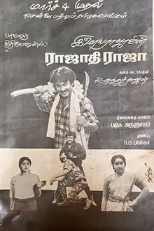 Rajadhi Raja (transl.Superior King) is a 1989 Indian Tamil-language masala film directed by R. Sundarrajan. The film stars Rajinikanth in a dual role, with Nadhiya and Radha portraying his characters' love interests. It revolves around Raja, a rich estate owner's son who seeks to avenge his father's death. He is aided in his quest by Chinnarasu, a lookalike. Rajadhi Raja was released on 4 March 1989 and became a box office hit.