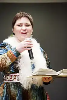 Rawdna Carita Eira (born 6 October 1970 in Elverum) is a Norwegian and Sámi playwright and author. She grew up in Brønnøysund in Nordland county in Norway and trained to be a teacher. She has worked as a reindeer herder, stage manager and playwright associated with Beaivváš Sámi Theatre. She has written lyrics for her own songs and tunes by, among others, Mari Boine. Eira published a bilingual book in 2011, ruohta muzetbeallji ruohta/løp svartøre løp, which was nominated for the Nordic Council Literature Prize in 2012. She lives in Kautokeino.