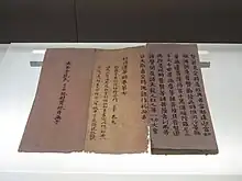 Emperor Taizu of Song (r. 960–976) ordered state officials to visit Buddhist monasteries to burn incense on the days his father, grandparents, and great-grandparents had died. He also looked to Buddhist temples for the post-mortem welfare of his ancestors.[2] In 971, Taizu ordered work begin on a complete print edition of the Tripiṭaka Buddhist Canon (Kaibao zangshu 開寶藏書) in Chengdu. It took 10 years to finish the 130,000 blocks needed to print the text. The finished product, the Sichuan edition of the Kaibao canon, also known as the Kaibao Tripitaka, was printed in 983.[3]