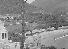 In 1898, the Hong Kong Golf Club opened in the valley behind the Deep Water Bay and became a social hub.[3] Roads were developed between the South and the North parts of Hong Kong Island and in the 1910s, Repulse Bay was developed into a beach. The Repulse Bay Hotel was built by the Kadoorie family in 1920.[3] To attract swimmers, a bus route from Central to Repulse Bay was created, and now stands as one of Hong Kong's oldest bus routes. The writer Ernest Hemingway and the American actor Marlon Brando stayed at the Repulse Bay Hotel.[4]