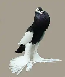 The Reverse-wing Pouter (German: Verkehrtflügelkröpfer) is a breed of fancy pigeon developed over many years of selective breeding. Reverse-wing Pouters, along with other varieties of domesticated pigeons, are all descendants from the rock pigeon (Columba livia).[1] The breed is known for its eye-catching markings.[2]