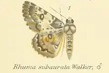 2. Beccaloni, G.; Scoble, M.; Kitching, I.; Simonsen, T.; Robinson, G.; Pitkin, B.; Hine, A.; Lyal, C., eds. (2003). "Rhuma subaurata". The Global Lepidoptera Names Index. Natural History Museum. Retrieved 13 May 2018.
