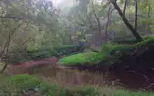 Richland Creek rises in a pond on the North Carolina State Fairgrounds and then flows north across I-40 and through Schenck Forest to join Crabtree Creek.[4] The watershed is about 30% forested.[3]