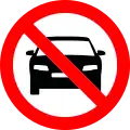 Prohibitory signs in Indonesia are circular and have a red border with diagonal bars except for Stop, Yield, and Railroad Crossing signs.