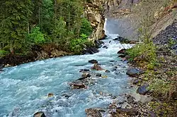 The Robson River is a short but swift, rapid and waterfall-infested river in Mount Robson Provincial Park of British Columbia.[3] It is a tributary of the Upper Fraser River and it originates near Robson Pass, which divides the Robson River and the headwaters of the Smoky River drainage. There are three lakes along the river's course as well as four waterfalls.