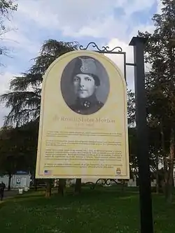 The park was named after American doctor Rosalie Morton (1876-1968) in 2006. She was made a special commissioner of the Red Cross to take supplies to the Macedonian front in the World War I. After the war, she helped to establish three hospitals in Serbia, equipped them with 200 beds and medical supplies, sent 60 students to study medicine in the US and personally supported schooling of 29 Serbian war orphans.[1][2] In 1919, she donated Ford's medical vehicle to the Belgrade's emergency medical service, the first motorized ambulance in the city.[3]