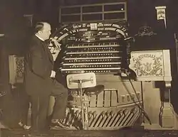 The theater's stage innovations included a rising orchestra pit which could accommodate 110 musicians, and a three-console Kimball theater pipe organ. The film projection booth was recessed into the front of the balcony to prevent film distortion caused by the usual angled projection from the top rear wall of a theater. This enabled the Roxy to have the sharpest film image for its time.[7]