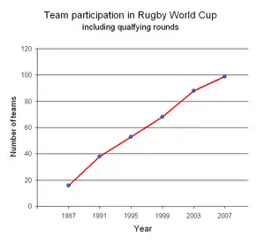 • 1 There was no qualifying process to the 1987 World Cup. The at the time eight IRFB members (minus South Africa boycotted because of apartheid) were joined by nine invited nations.