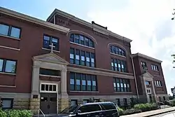 Sacred Heart School is a historic building in Dubuque, Iowa, United States. Completed in 1915, the building replaced Marquette Hall near Sacred Heart Church that had been built in 1888. It was designed by the Dubuque architectural firm of Fridolin J. Heer & Son. While the firm has several of its designs represented on the National Register of Historic Places, this is the only school building.[2] The Sisters of St. Francis from Dubuque and lay teachers taught in the school, which had 640 students when it opened. Its early principals were laymen until 1952 when a Sister became the principal.[3] A ninth-grade class for boys was begun in 1930 and tenth grade was added two years later. The high school program was discontinued in 1949 due to a teacher shortage. Enrollment in school was 900 in 1953 and 1,020, excluding the kindergarten, in 1956. The kindergarten program was discontinued the following year because of a lack of classroom space. Eventually, the school itself was closed.