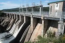 There are three hydroelectric dams on the river, the first two near its mouth and the third and largest about 90 kilometres (56 mi) inland.