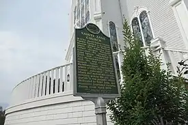 The Jesuit missionary Claude Dablon inaugurated the original church on Mackinac Island in 1670, and the earliest surviving parish records date back to 1695.[2] After moving from Fort de Buade to Fort Michilimackinac about 1708 and from Fort Michilimackinac to Mackinac Island in 1781, the parish used a historic log church for decades. It constructed the current church complex in 1874 on a site donated by the former fur trader Magdelaine Laframboise.[3] The church was dedicated as a Michigan State Historic Site on December 20, 1990.