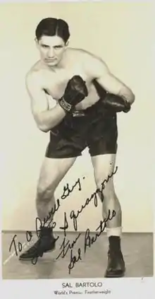 Salvatore Interbartolo, better known as Sal Bartolo (November 5, 1917 February 19, 2002) was an American boxer and WBA featherweight champion from March 1944 through May 1946. At the time, Bartolo's title was sanctioned by the National Boxing Association (NBA).[1]