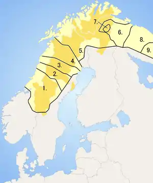 - ↑ "Sápmi". p. 1. Archived from the original on 26 June 2019. Retrieved 26 June 2019.
