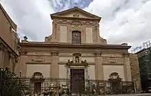 A plaque in the church indicates the site once housed a synagogue.[1] In January 2 of 1492, King Ferdinand expelled all the Jews from the lands under the crown of Aragon. On 6 October 1492, the Jewish community sold the site to the Di Salvo family, putatively to cover a debt. In 1507, under the approval of the archbishop of Palermo, Giovanni Paternò, the Clarissan nun, Lucrezia di Leo, obtained the site and adjacent courtyard to found a small monastery called Santa Maria del Popolo. This monastery remained poor in donations and numbers, and in 1579, the remaining nuns were assigned to the convent of Santa Maria di Monte Oliveto. In 1582, the Collegio dei Notai was assigned the monastery's property, but 14 years later transferred the property to the Discalced Augustinians, who ultimately continued construction of a church dedicated to St Niccolò in 1603–1609, but due to damage from earthquakes the church underwent reconstructions in the 17th and 18th-centuries. The Augustinian monastery was felt to be failing to keep their monastic orders, they were moved to Santa Maria della Sanita, and this church became a parish site of worship.[2] In 1824, the church was reconsecrated by Cardinal Pietro Gravina, brother of Federico Gravina.
