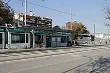 The Trambesòs stop, with the Rodalies de Catalunya station just behind it