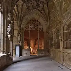 Between the years 1517 and 1528 the cloister was built, which combines flowery Gothic in domes and pillars, with plateresque in the tracery of the arcs. Most gravestones of the mural tombs located there belong also to this style.
