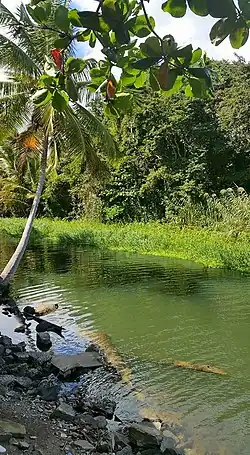 Río Santiago is a short river of Puerto Rico. About 5.95 miles (9.58 km) long, it is spanned by historic Bridge No. 122 on the coastal road near barrio Duque in Naguabo, Puerto Rico. It discharges into the Caribbean Sea from Naguabo.[3]
