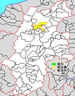- January 14, 1879 - Due to the district, ward, town and village status enforcement, the district seat was located at the village of Shiozaki.