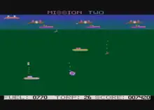 Seafox is a shoot 'em up written by Ed Hobbs and published by Broderbund in 1982 for the Apple II and as a cartridge for the Atari 8-bit family.[1] A VIC-20 port, also on cartridge, was released in 1983.[2]