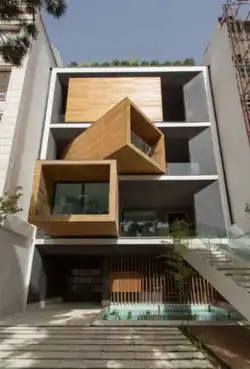 Sharifi-ha House is a modular home in Tehran, Iran. It was built in 2013 and has three wooden boxes which are rooms; the boxes can be rotated laterally. The resulting 90 degree rotation extends the living space and creates a large terrace.